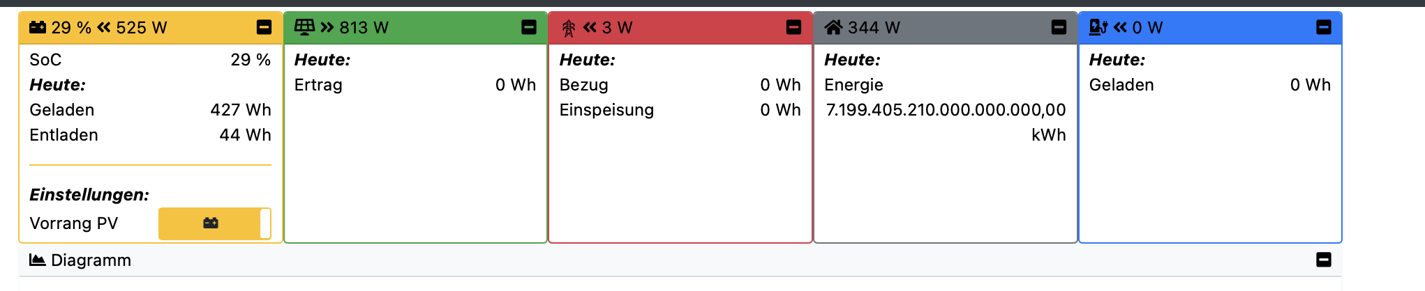 ich habe mir nun das Image der V. 2 installiert und auf neuem Stand gebracht. Aktuell bekomme ich den korrekten Heimverbrauch angezeigt, aber unter Energie einen Fantasiewert: