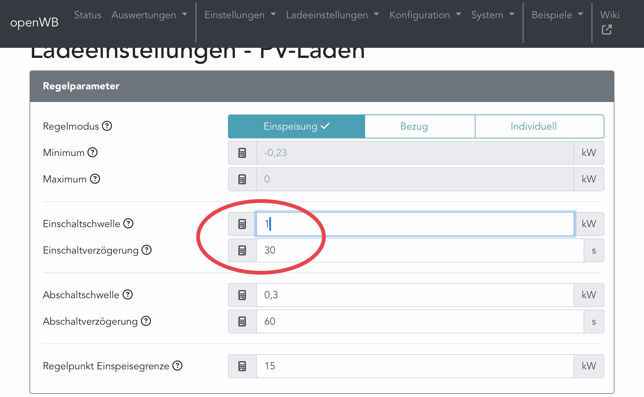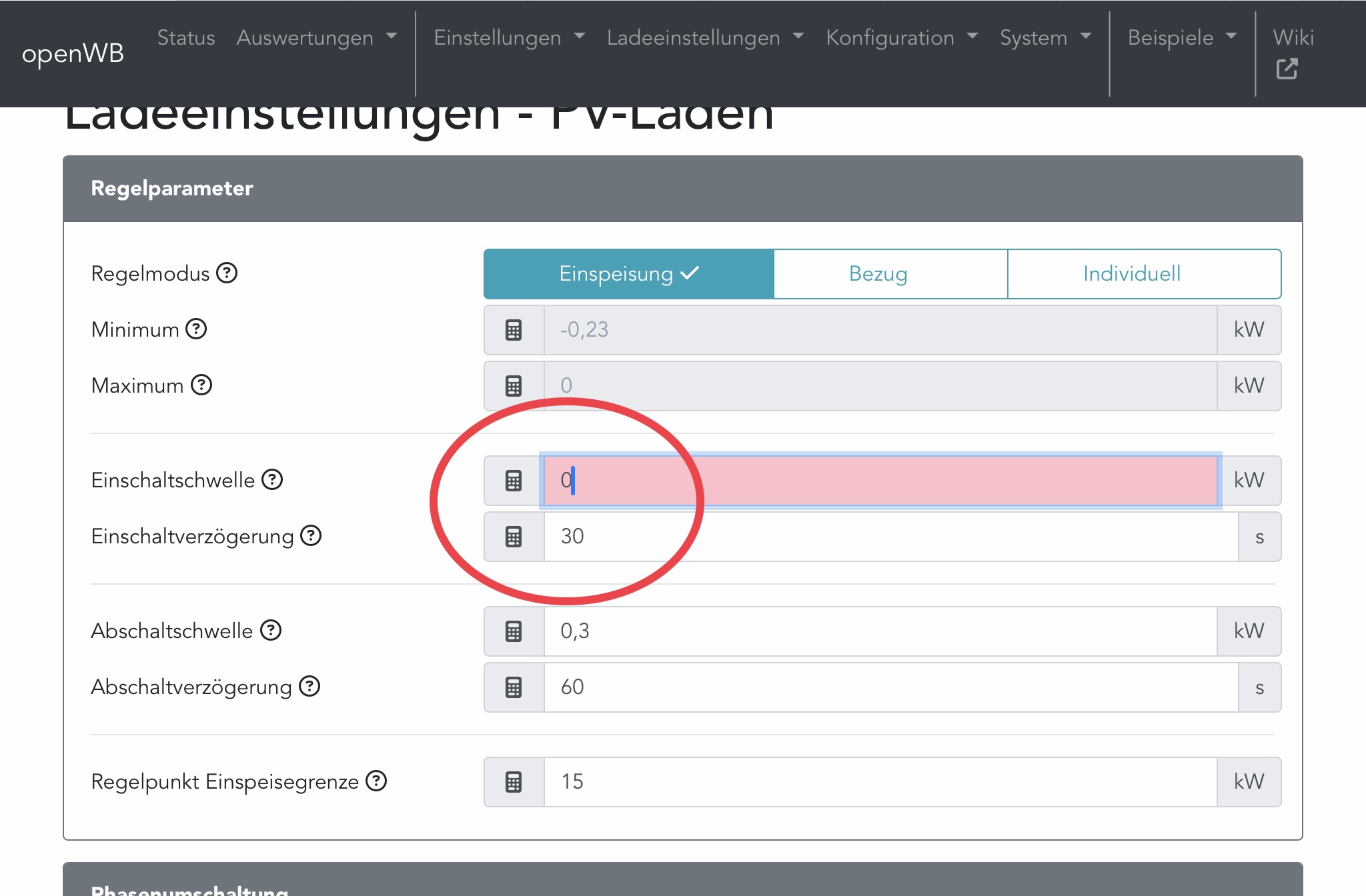 wenn ich die Einschaltschwelle ändern möchte springt, nachdem ich auf das Komma gehe, die Anzeige immer auf 0.