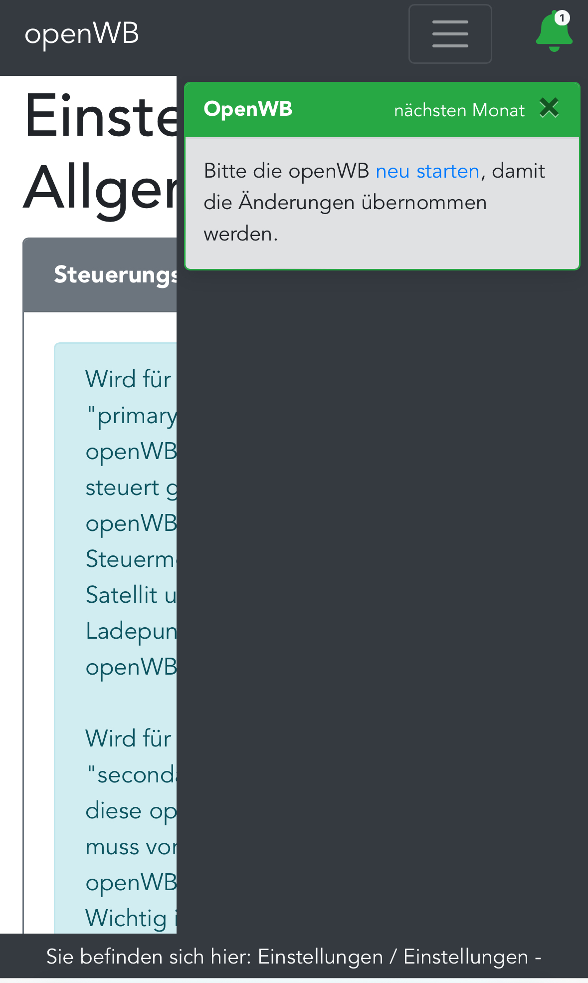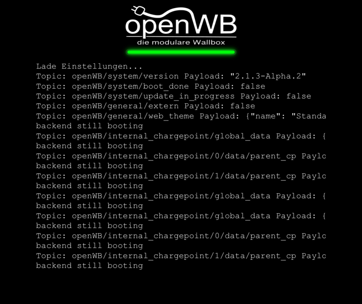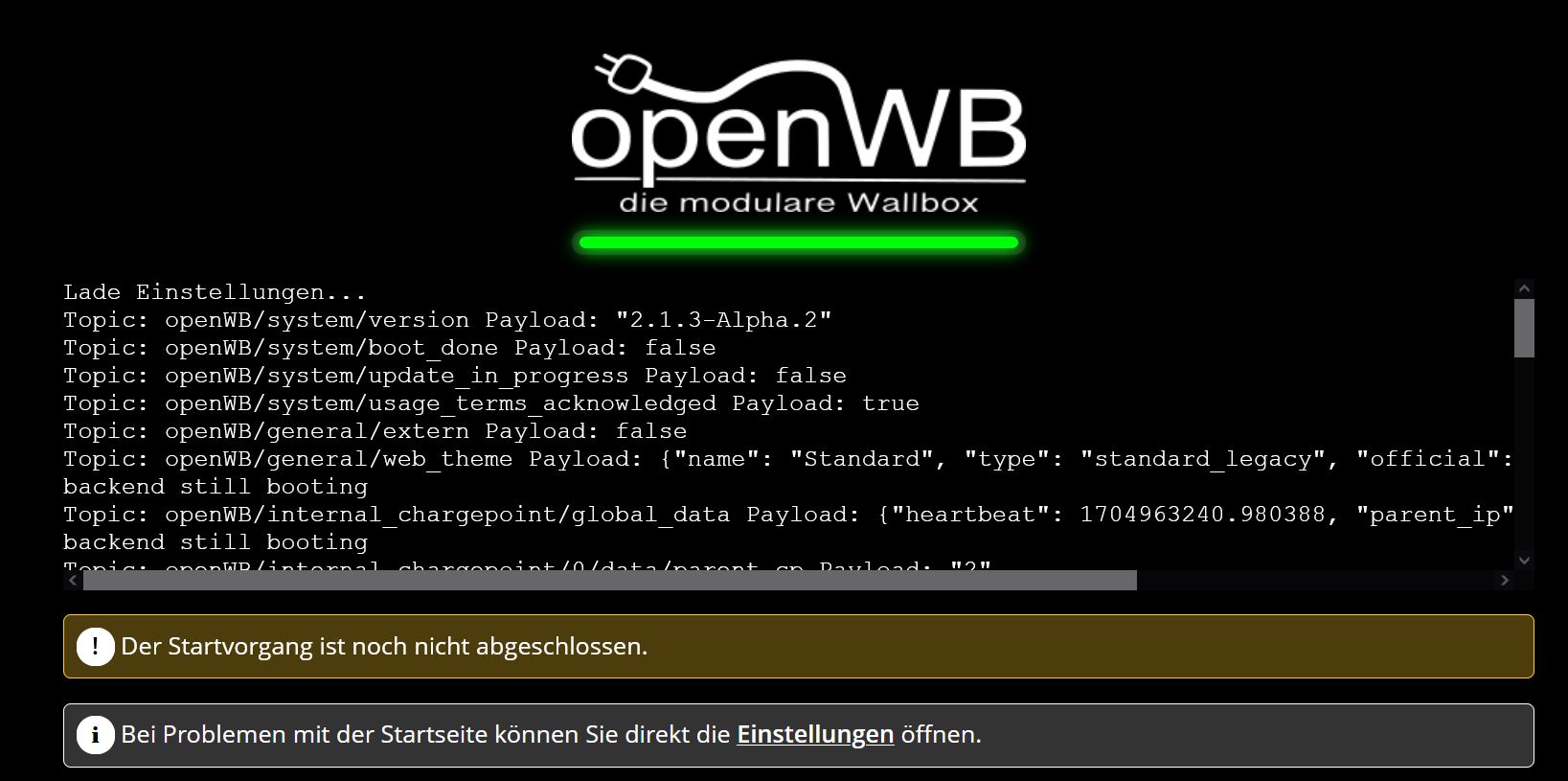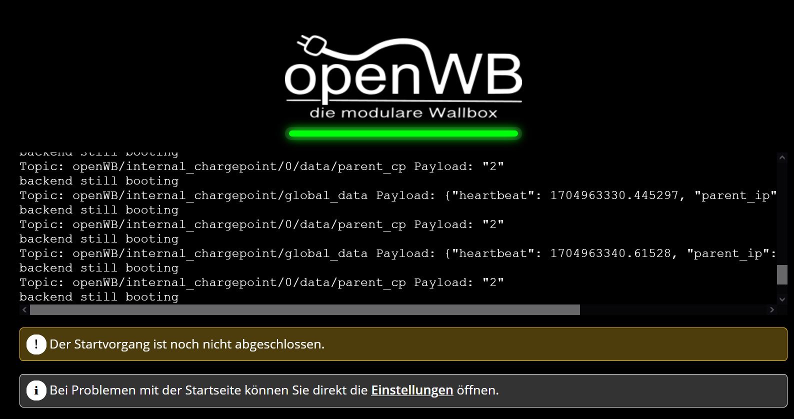 Die Werte scheinen sich alle noch zu aktualisieren. Auf andere Seiten komme ich nicht, dort erwartet mich immer die Meldung "openWB ist noch nicht bereit"