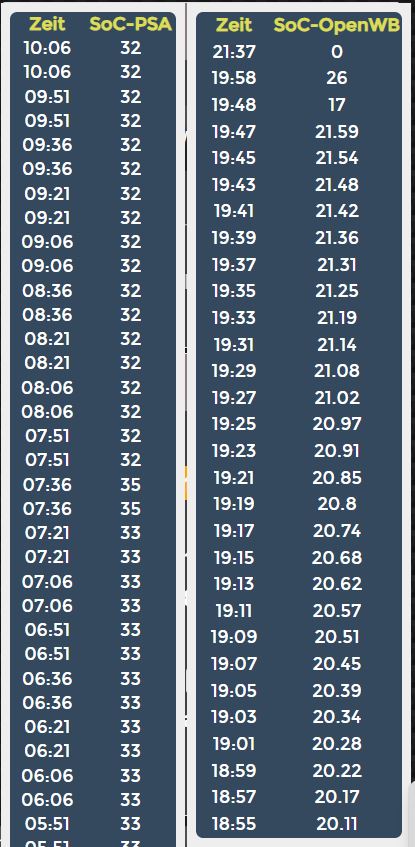 In einem ioBroker System wird der SoC über den PSA Adapter jedoch zuverlässig angezeigt.