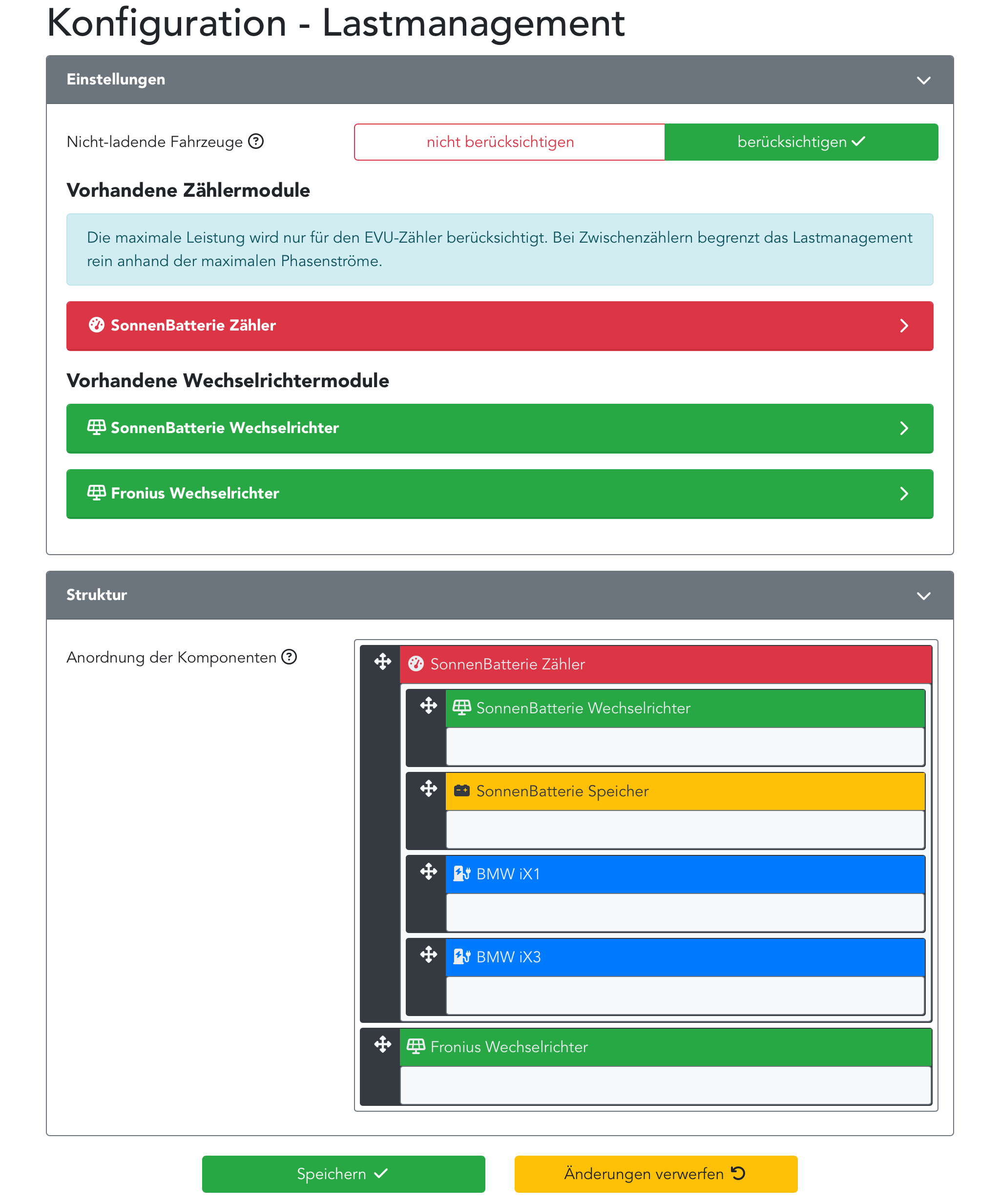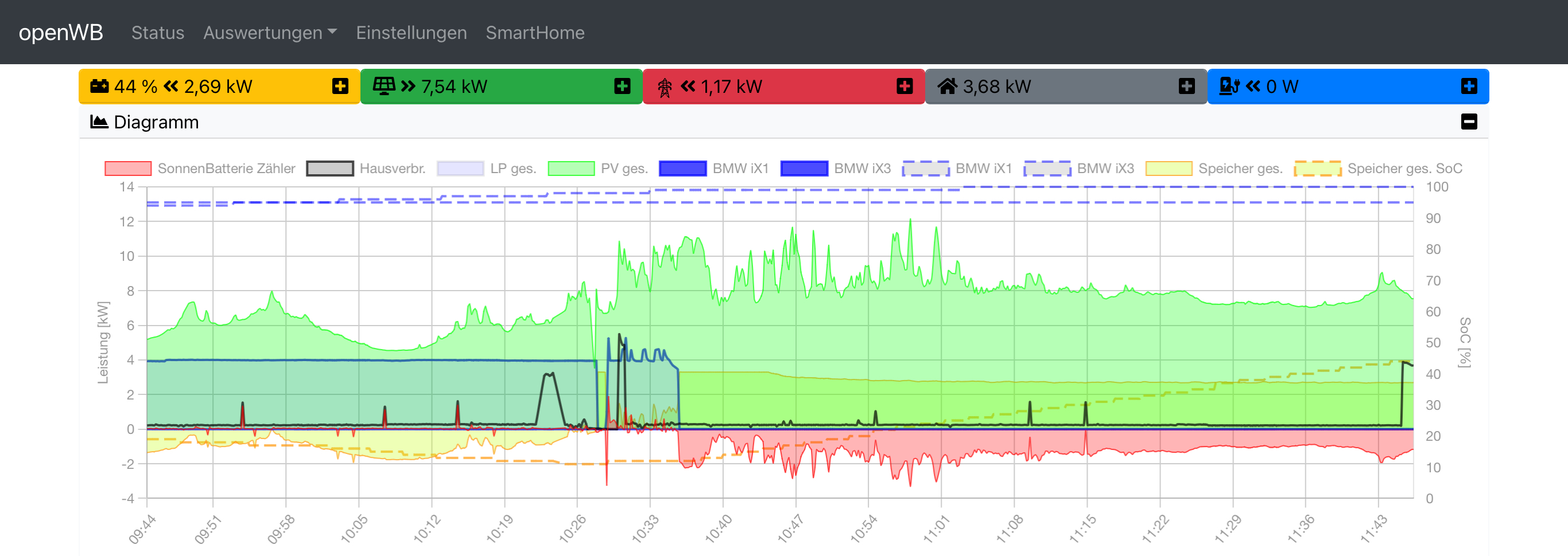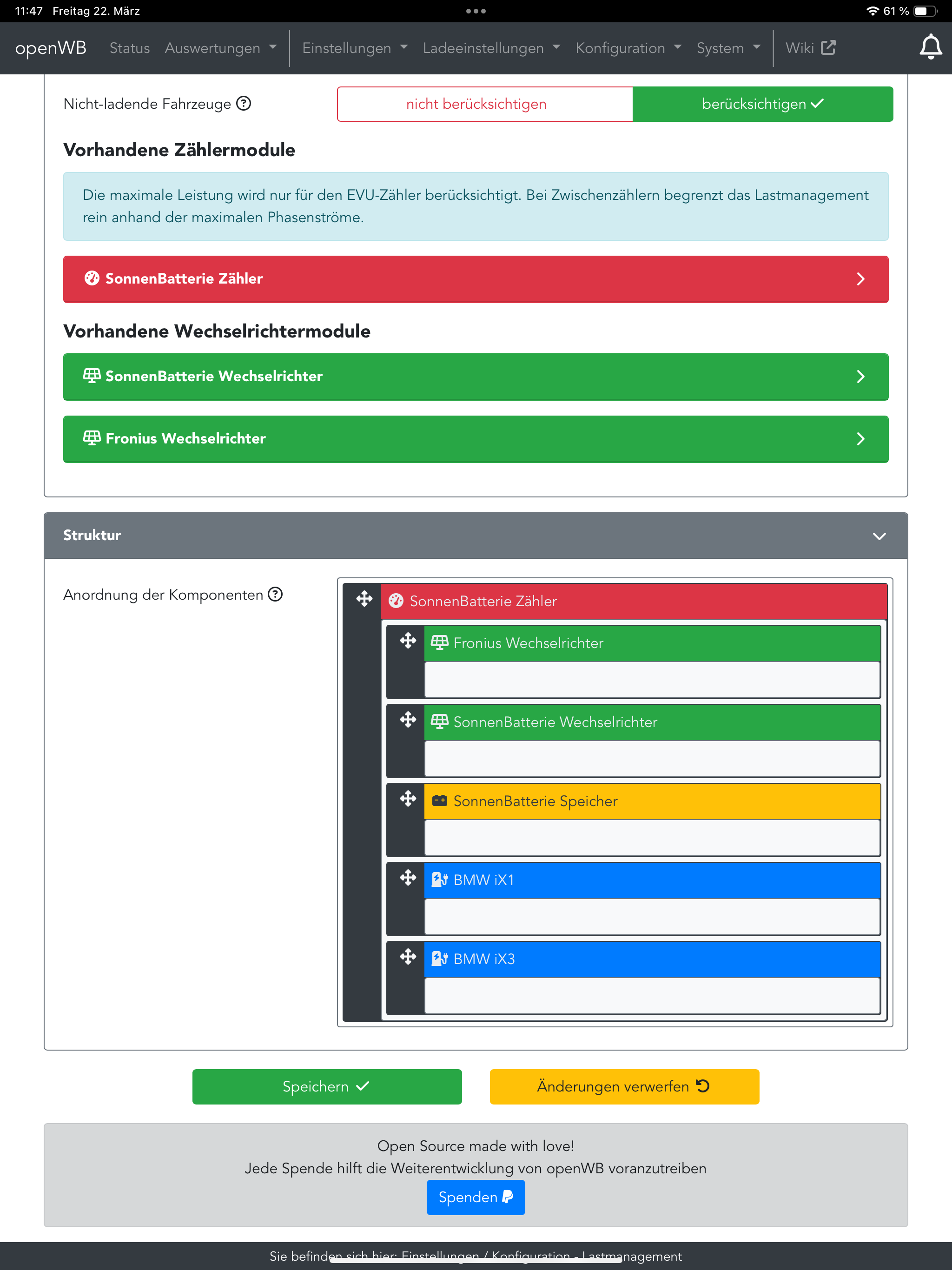 Bis dato hatten wir eine PV Anlage auf dem Hausdach (9,3 kW) und einen Sonnen Speicher. Mit der openWB series 2 Duo (Aktuelle Software 2) klappte auch alles perfekt. :D