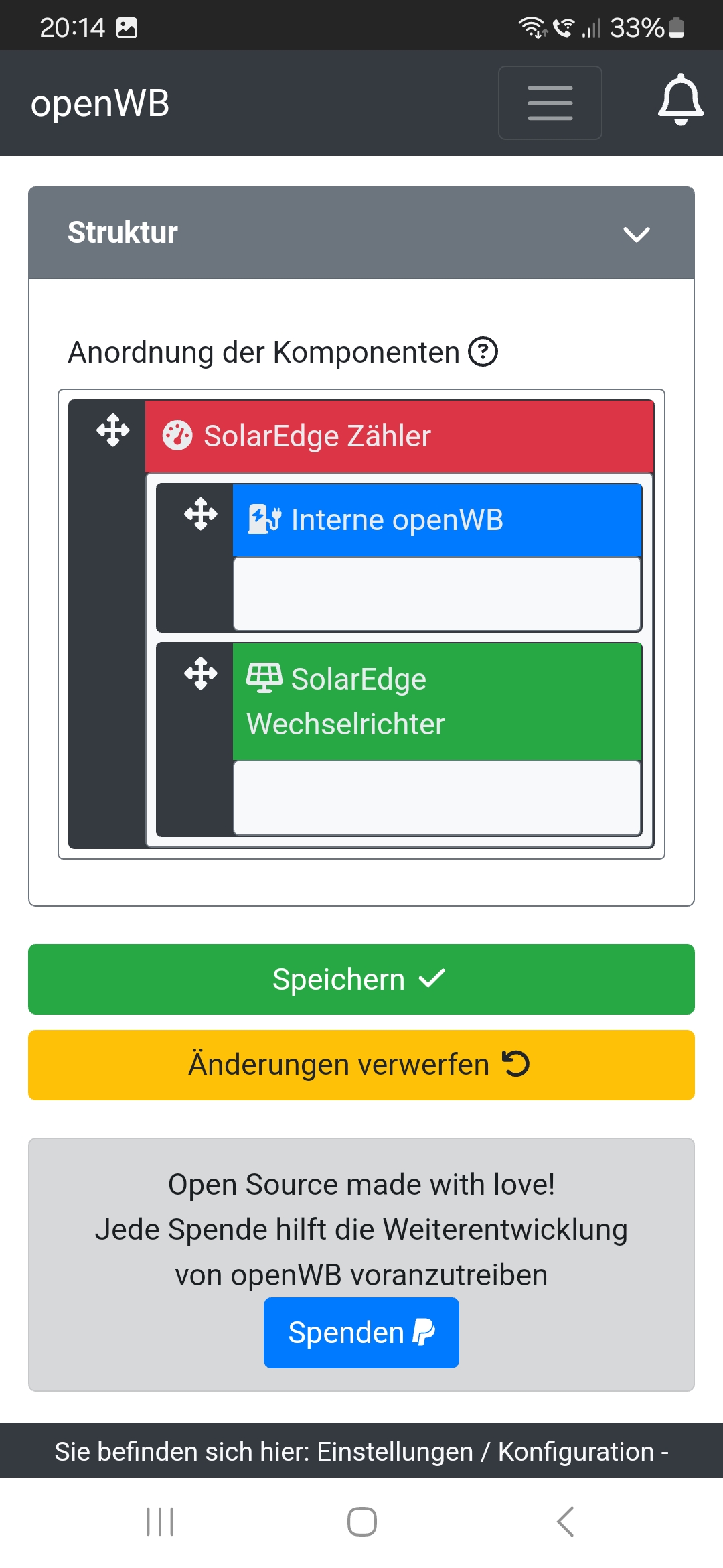 Ja, weil dort die Ladehardware mit dem Steuercontroller verbaut sind.Adler14 hat geschrieben: Mo Mär 25, 2024 7:49 pm Als Normalverbraucher mit einer Open WP, muss ich bei "Ladepunkte" nur eine "Interne OpenWB" einstellen und das wars. Stimmts?