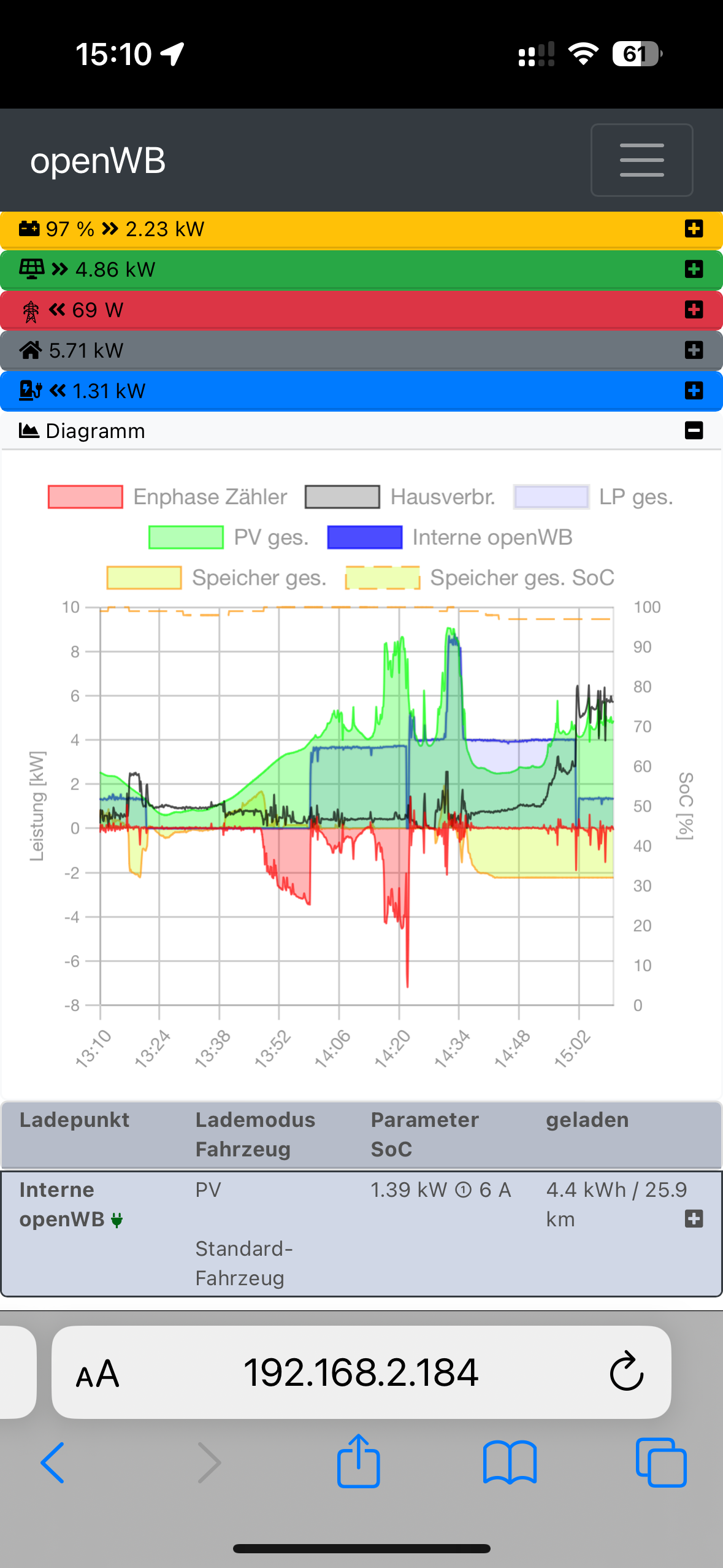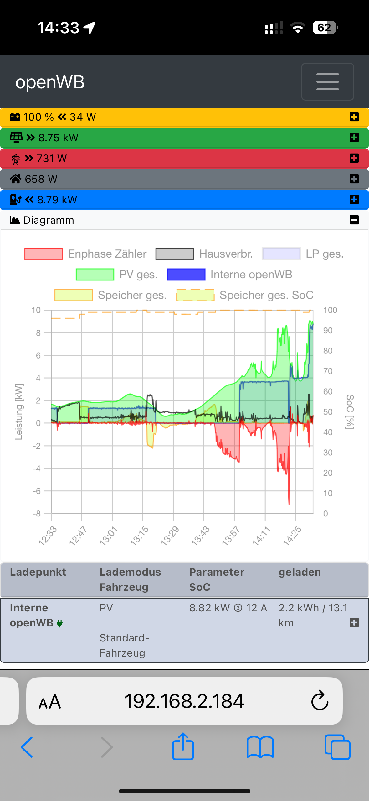 Ich habe tatsächlich vergessen zu schreiben, dass es funktioniert. Ich konnte heute Abend einen kleinen Test machen, um mit Hilfe meiner PV-Anlage mindestens 1,13 kW zu laden.