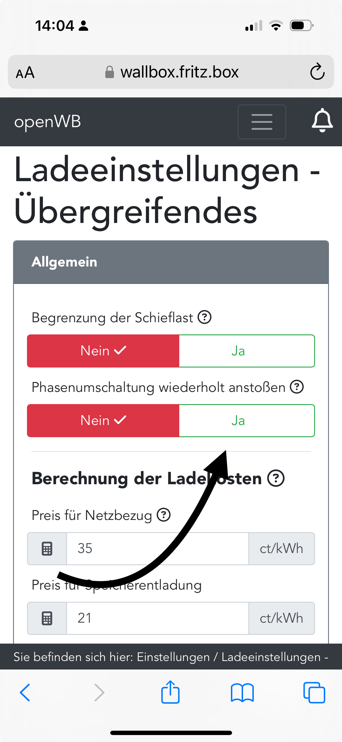Wo setze ich das richtige Häkchen damit auf 3 Phasen geladen wird?