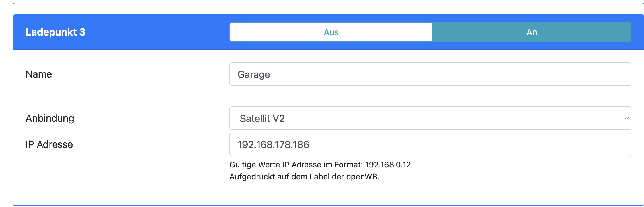 Mein Problem: ich habe seit zwei Jahren jeweils 2x Open WB Series2 die super am laufen sind. Aufgrund der KFW 442 Förderung ist jetzt noch eine dritte Wallbox dazu gekommen. Die Open WB Satellit. Der Elektriker hat diese schon in der Garage installiert und angeschlossen (Strom+LAN). Leider bekomme ich diese nicht in der (Haupt/Master) installiert/hinzugefügt. Es gibt leider keine wirkliche Anleitung im Netz+Forum zu finden (oder ich bin zu blind/blöd). Ich habe leider auch noch nicht verstanden wie ich die Satellit dann steuern kann?