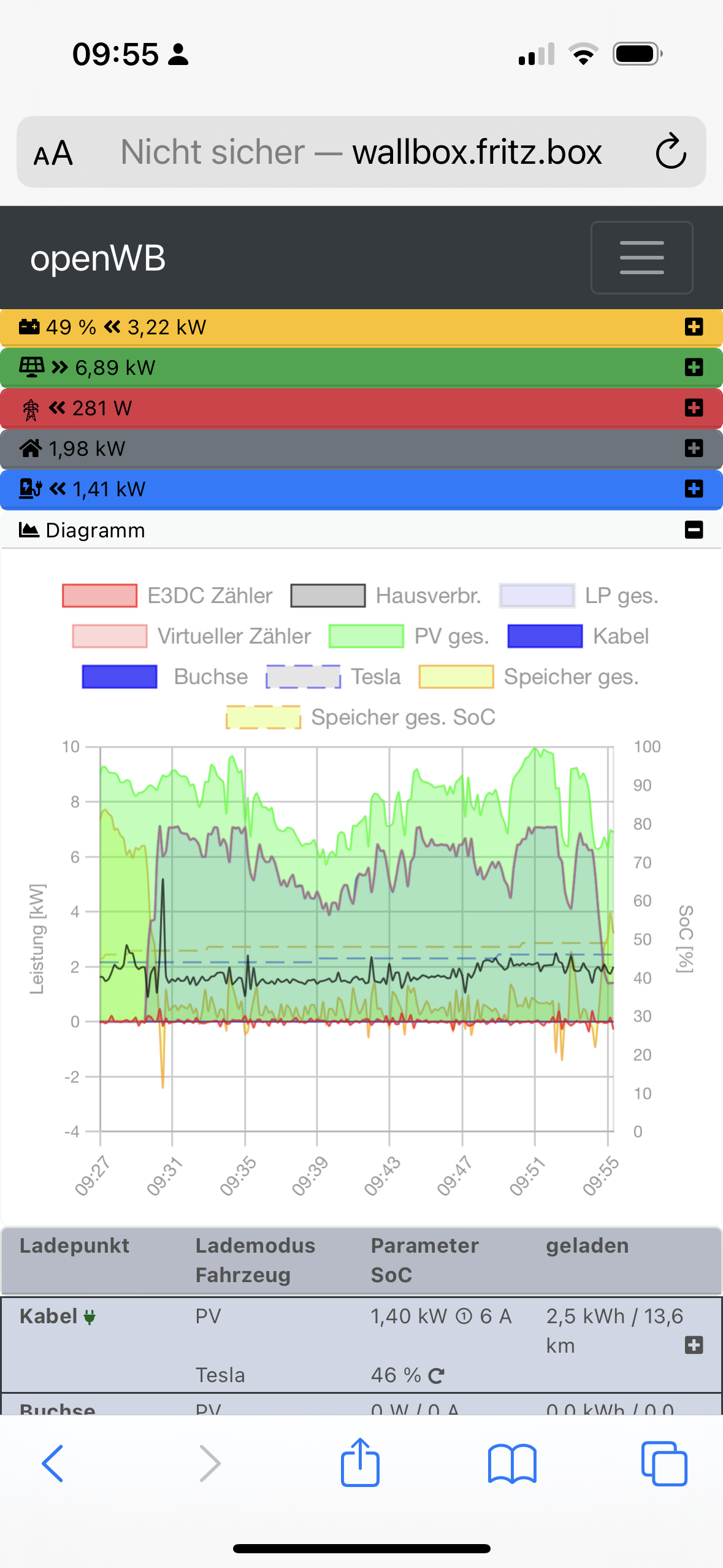 Ich weiß nicht, ob es evtl. wichtig ist, aber der Mini lädt nur mit ganzzahligen Ampere-Werten und übernimmt nicht die feine Regelung.