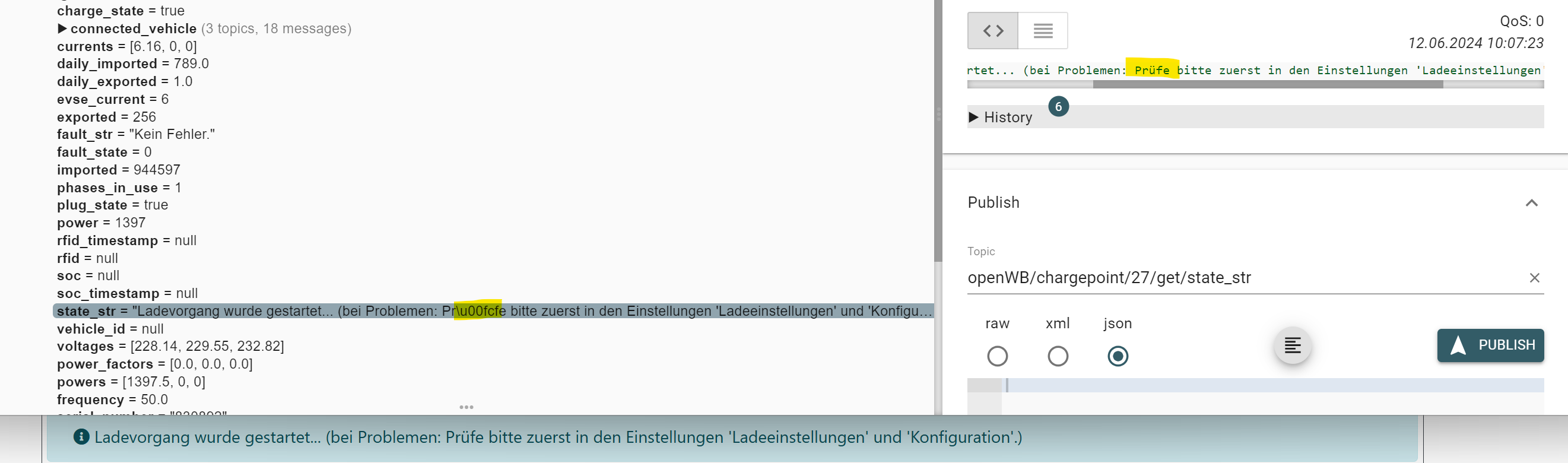 In MQTT kommen von OpenWB schon fehlerhafte Zeichen an.