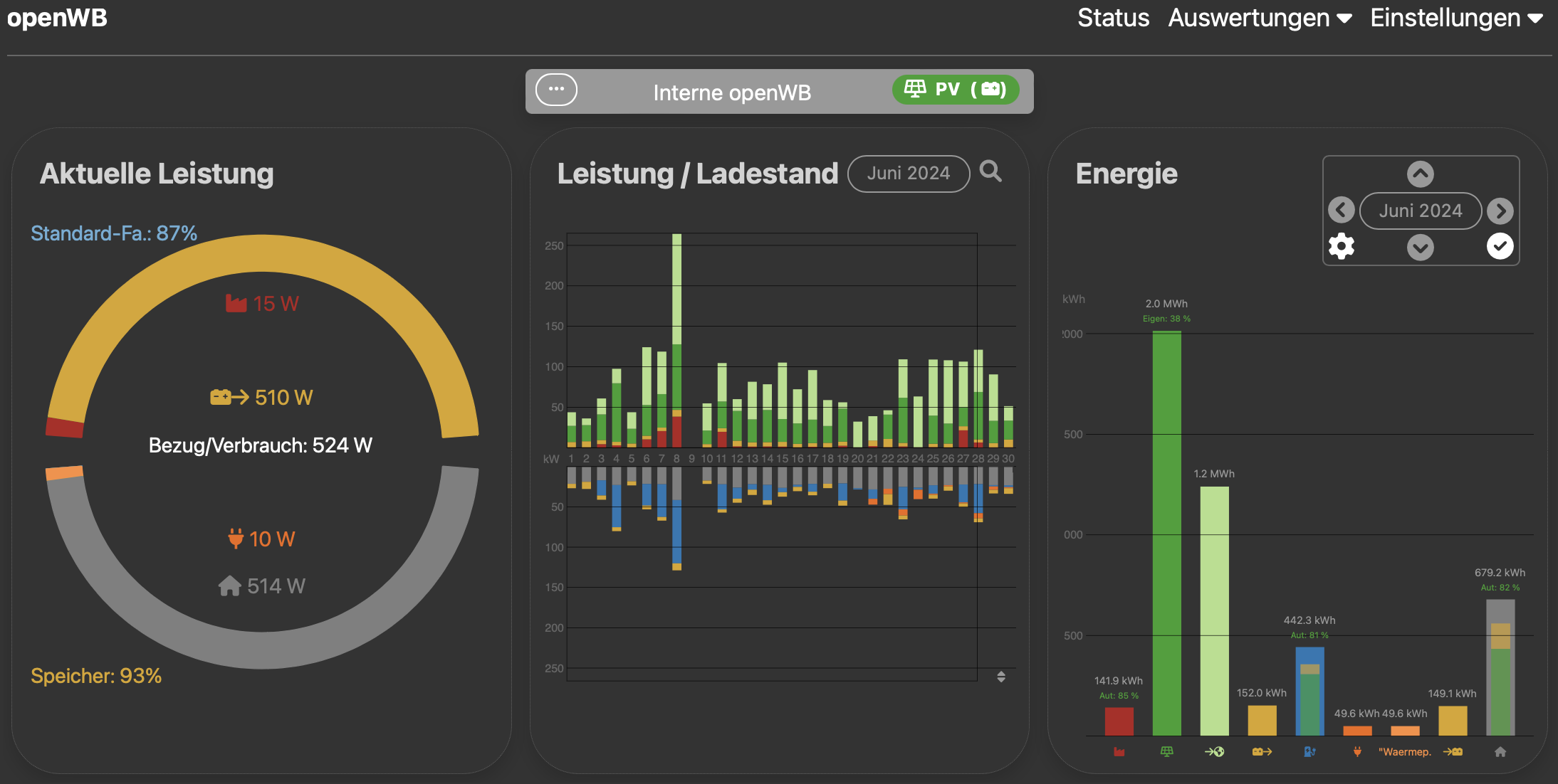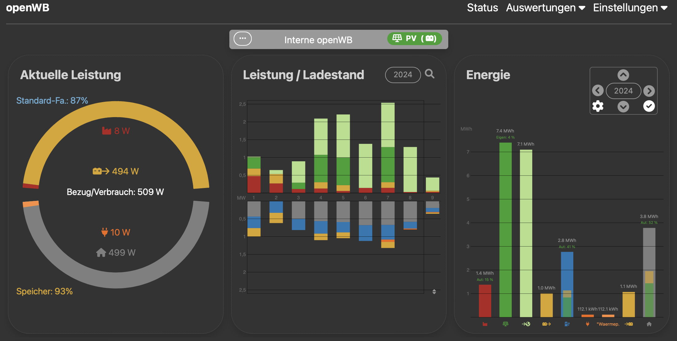 Wenn ich jedoch in die einzelnen Monate schaue, kann ich dort die PV Erzeugung sehen.