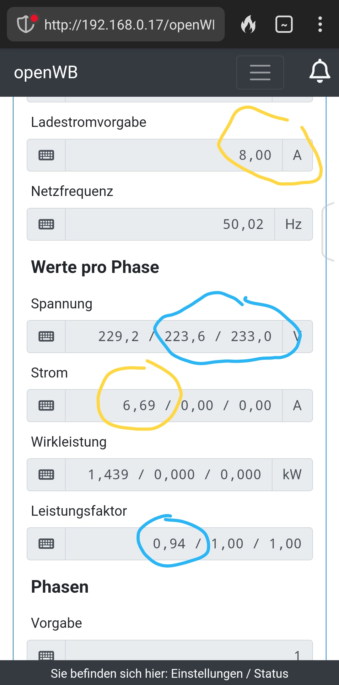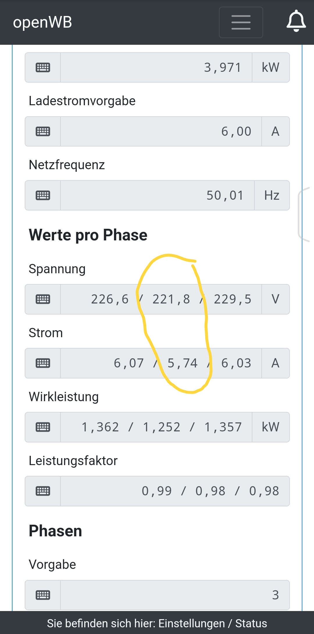 Mathias-oWB hat geschrieben: So Sep 29, 2024 7:17 am Danke aiole! Da ich erst jetzt wieder zum Laden komme, anbei die Werte: bei Vorgabe 8 A nur 6,69 A im Status - warum?
