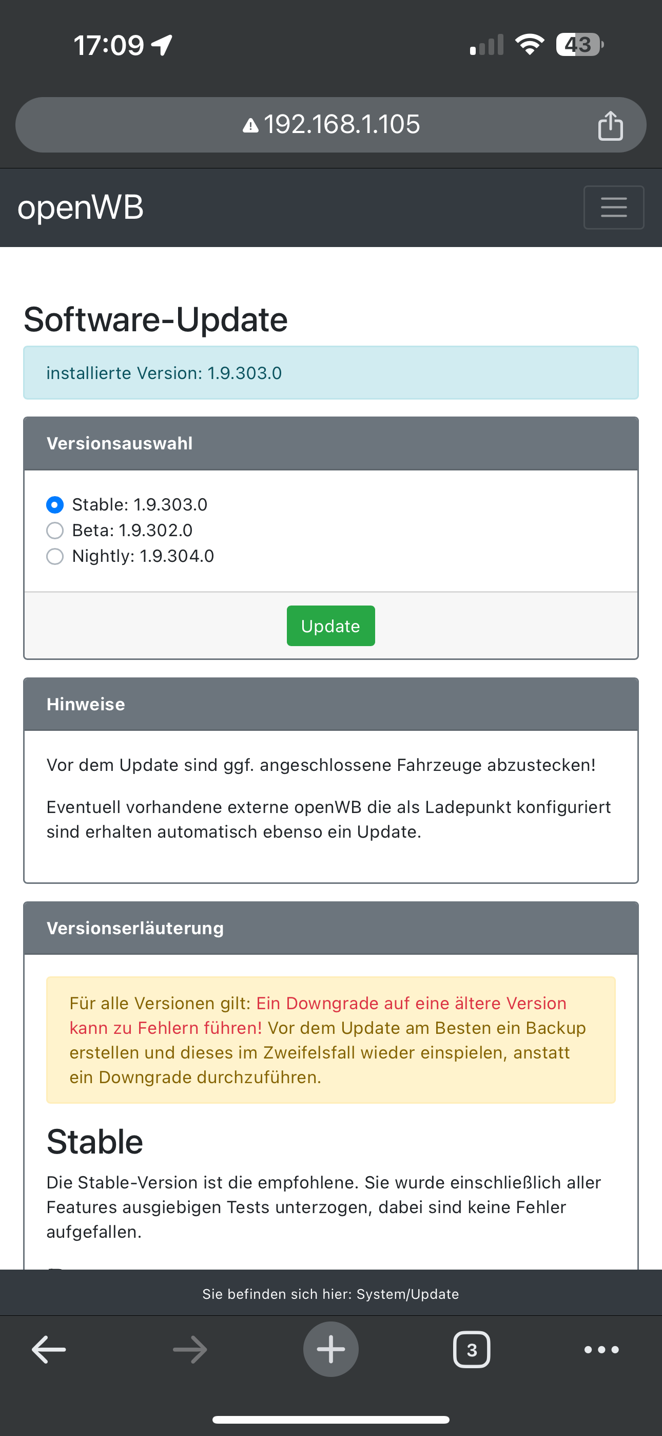Auf die V2 kannst du nur über eine neue SD Karte und Neukonfiguratuon des Systems wechseln. Gibt ein paar Randbedingungen wie LAN ist obligatorisch, keine Fremdladepunkte ausser SmartWB und noch ein paar andere Dinge.