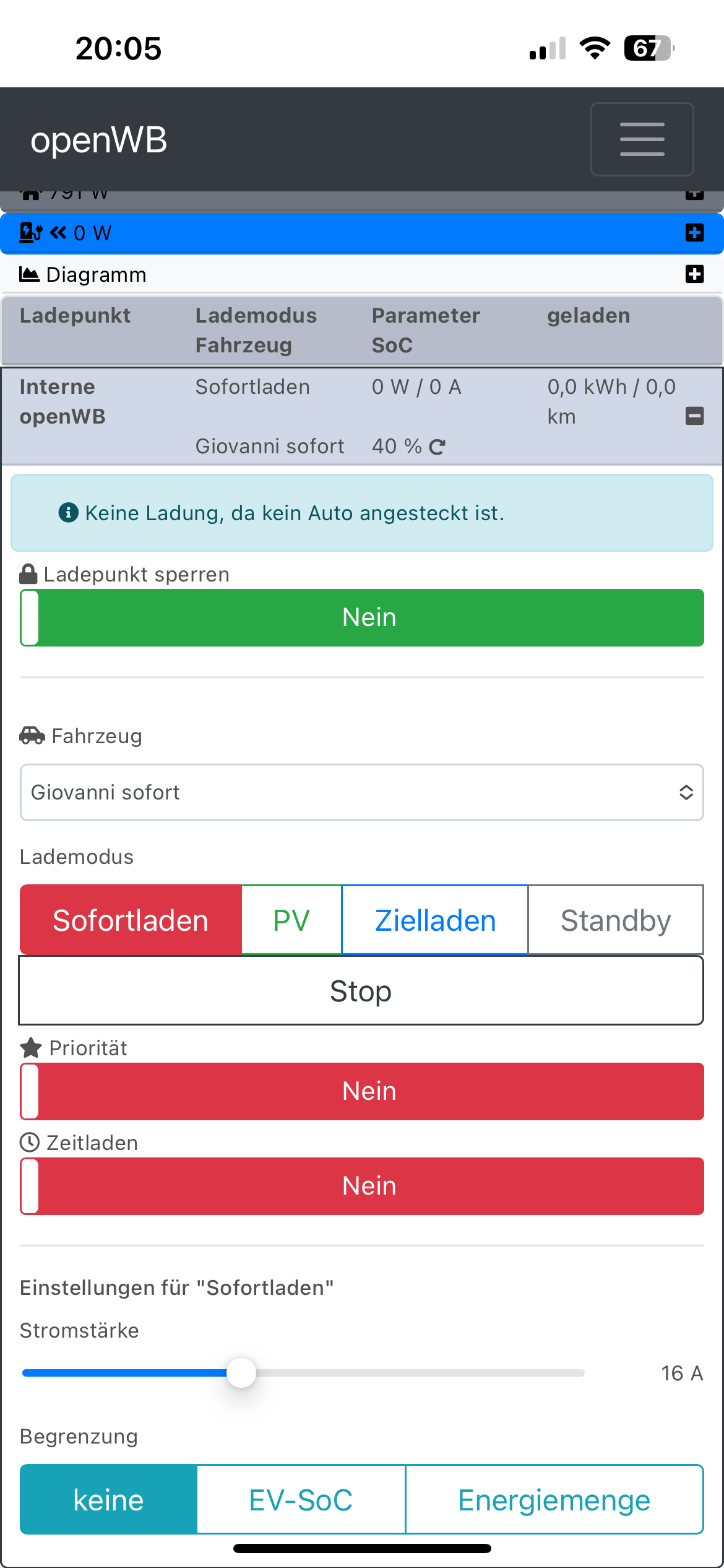 Loewuppel hat geschrieben: Di Okt 08, 2024 1:44 pm Wie sind denn Deine Einstellungen im Ladeprofil für Sofortladen? Evtl. Soll-Ladestrom reduziert oder Begrenzung für Energiemenge eingerichtet?