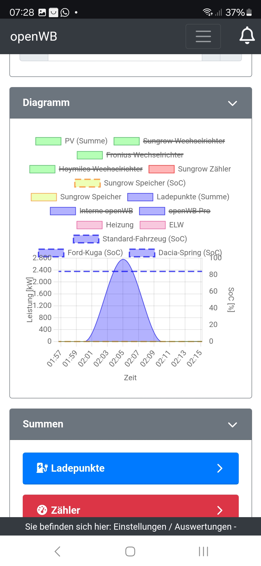 hatte mal wieder fehlerhafte Spitzen im Diagramm, diesmal in der Summe der Ladepunkte. Habe mal jetzt den Debug Level auf "Detail" gestellt, aber Fehler liegt schon zurück...