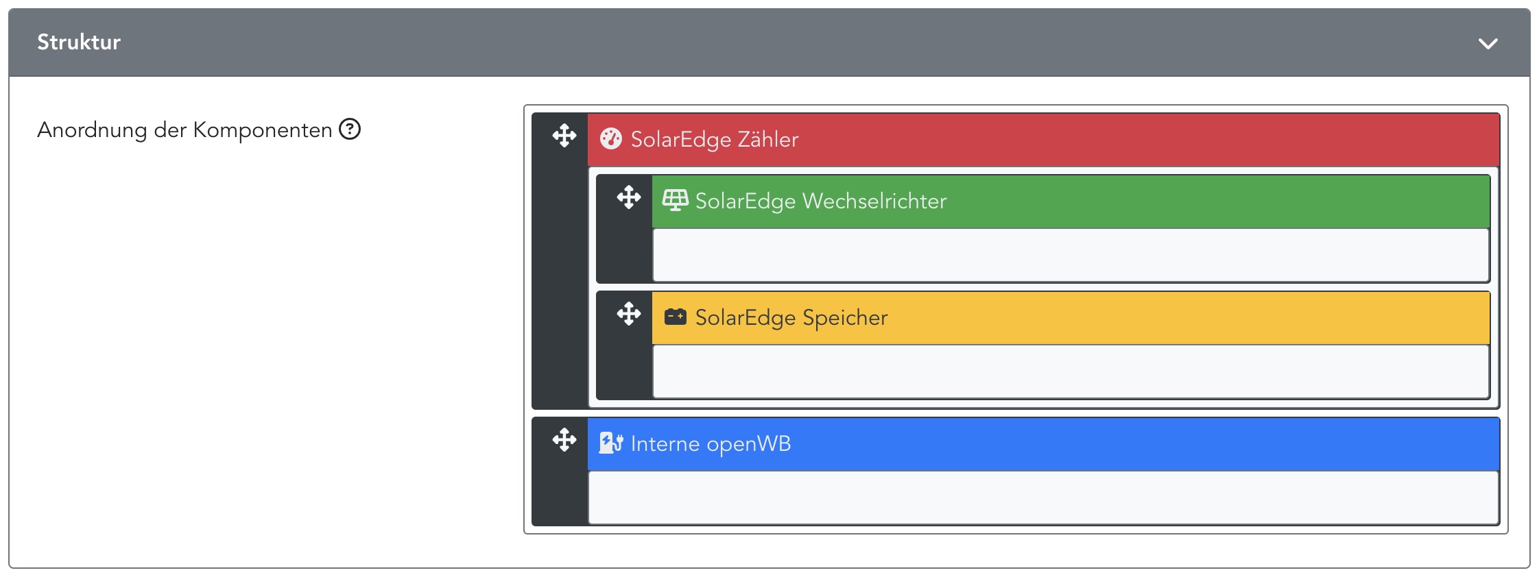 Vermutlich solltest Du die Struktur abändern: https://github.com/openWB/core/wiki/Hyb ... d-Speicher