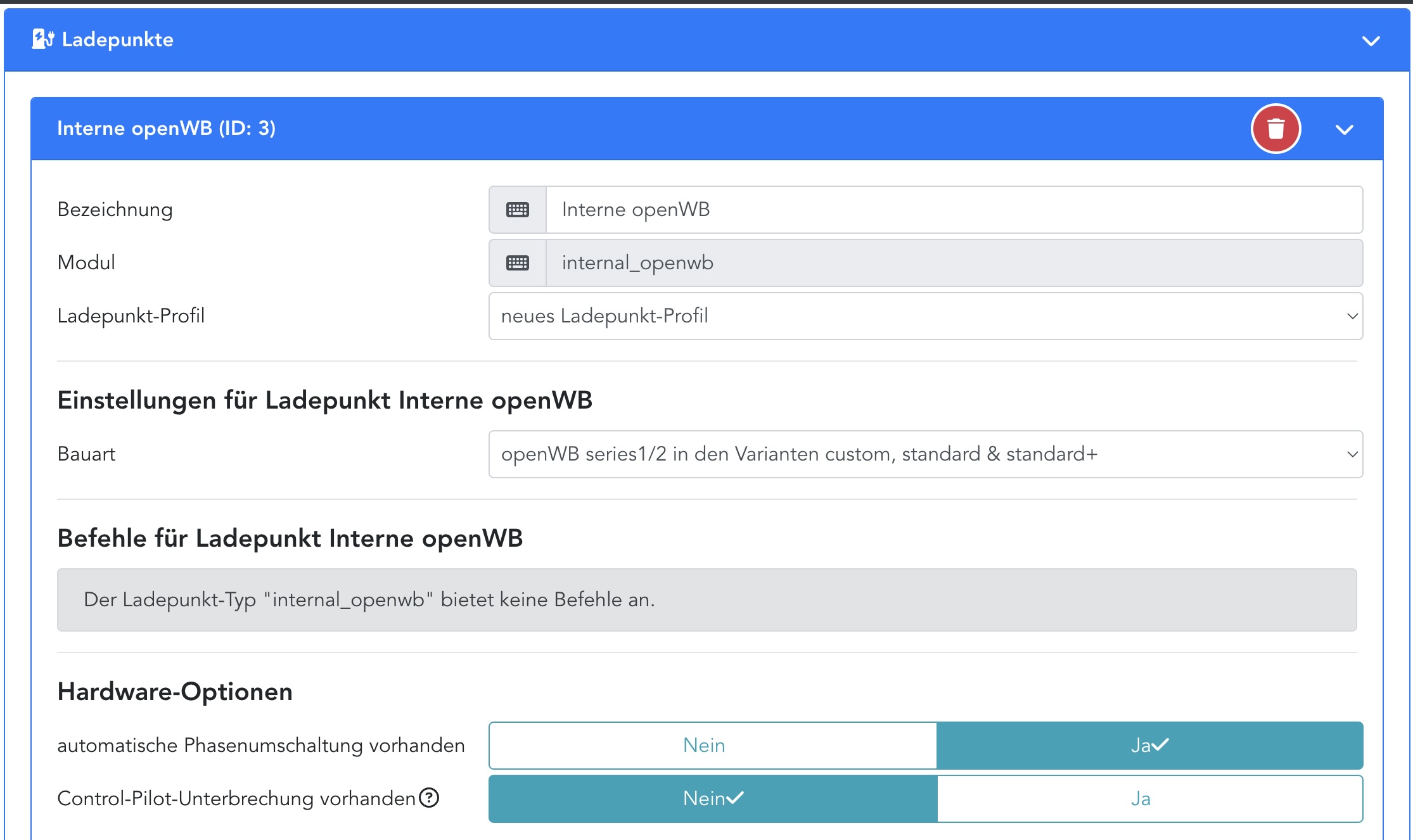 Hier der Ladepunkt (interne OpenWB):
