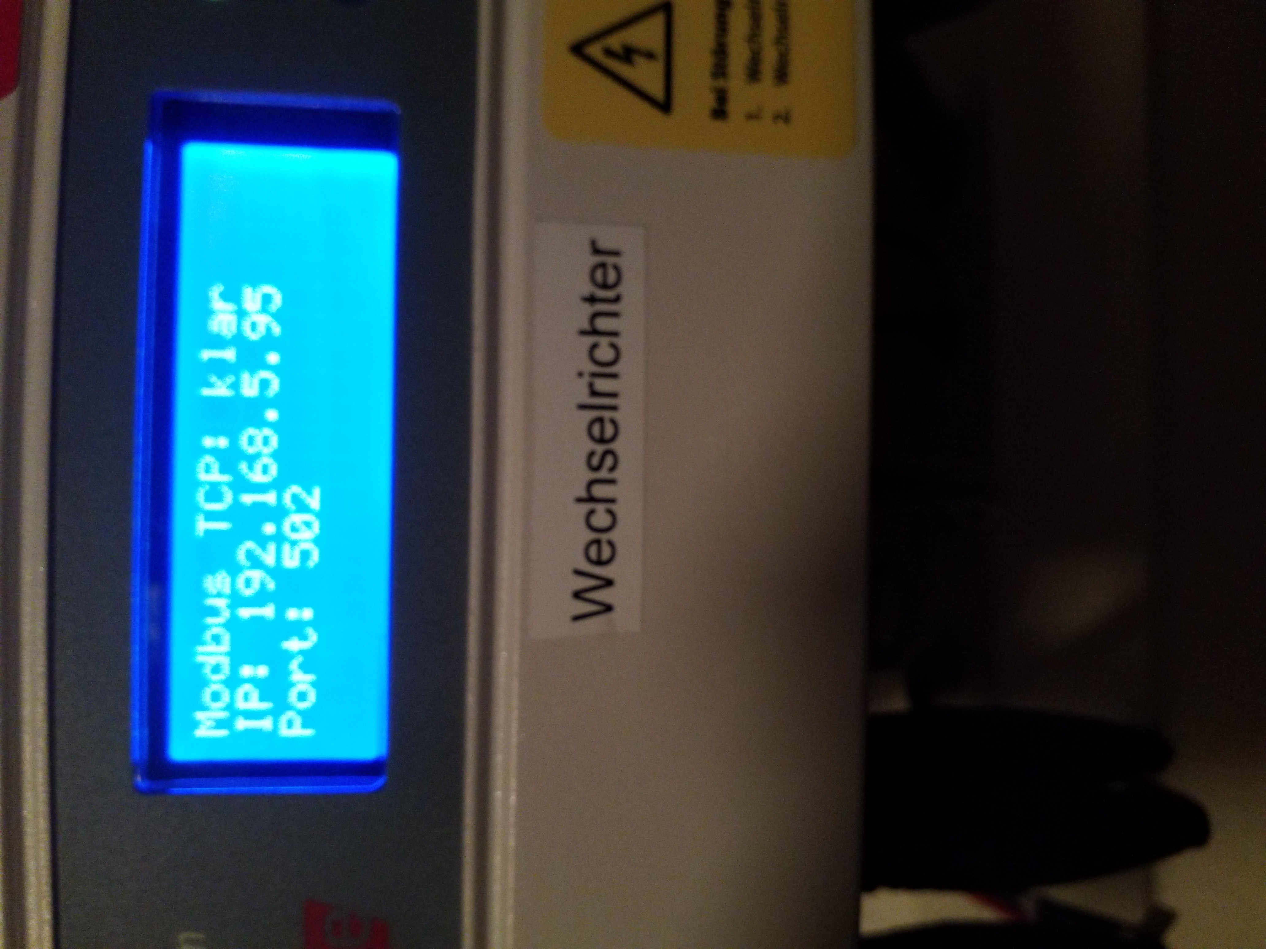 Nachdem ich den WR stromlos gemacht habe (über den Kippschalter), war sie nicht mehr zu erreichen. Mein Elektriker war vorhin da, zumindest zeigt die WB nun Werte an. Der Port 502 scheint zu funktionieren.