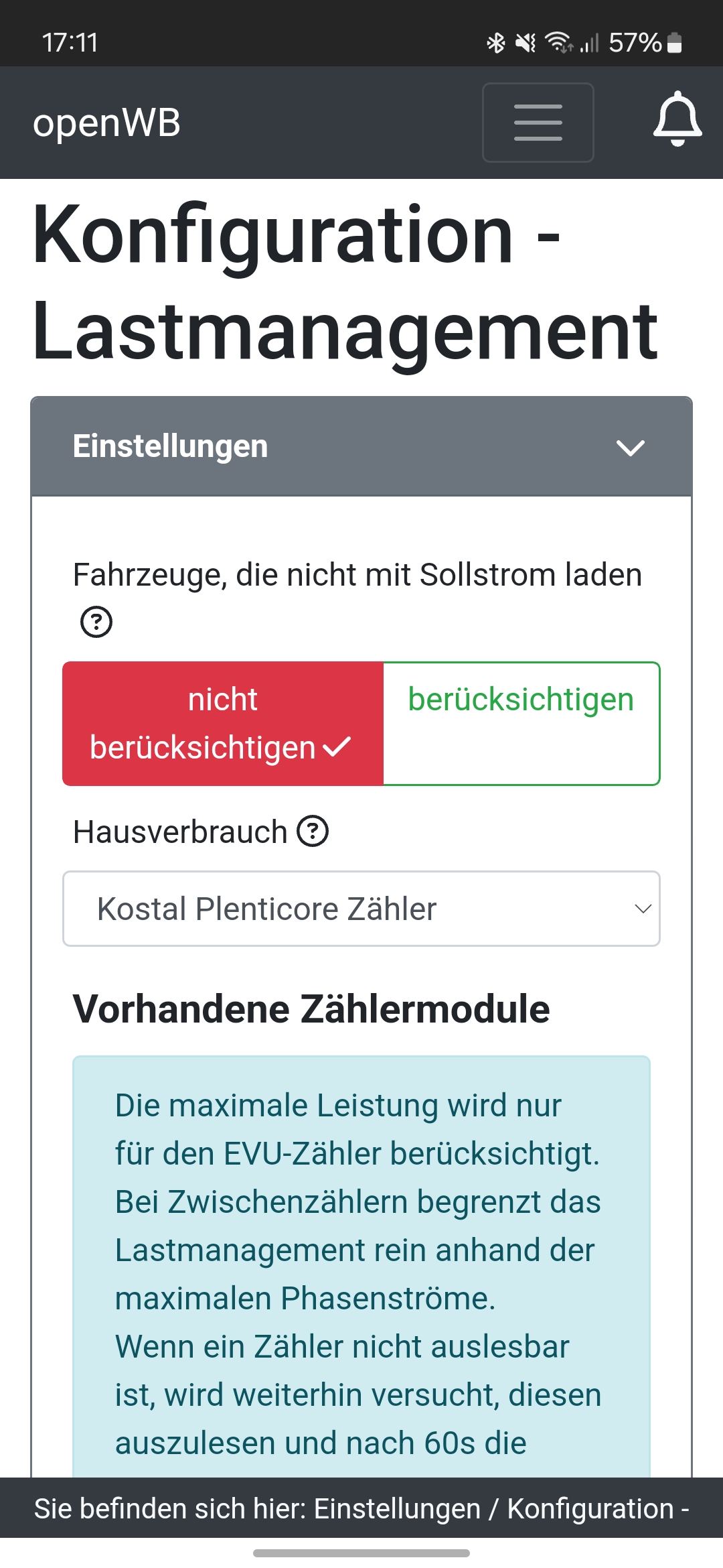 Könnten Sie mir bitte das für sie korrekte lastmanagement hier posten. Dann werde ich das wenn die Sonne demnächst nochmal schein, testen.