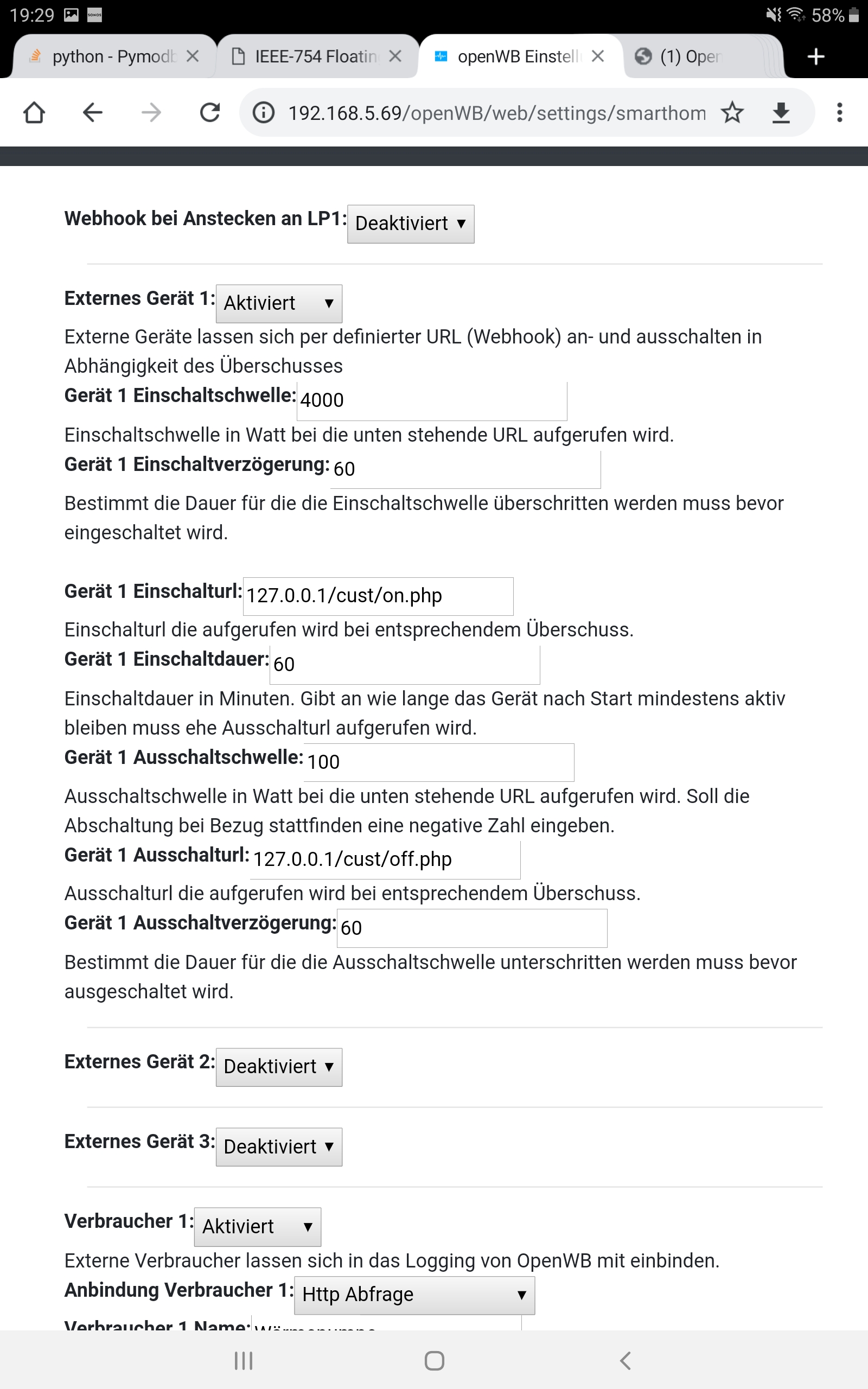 übrigens: mir erschliesst sich unter "Einstellungen >smart home" die Unterscheidung zw. ext. Gerät (zur Ansteuerung) und Verbraucher (nur Werte) nicht ganz; warum werden diese nicht in einem Anschlusspunkt zusammengefasst (Steuern und Messen)?