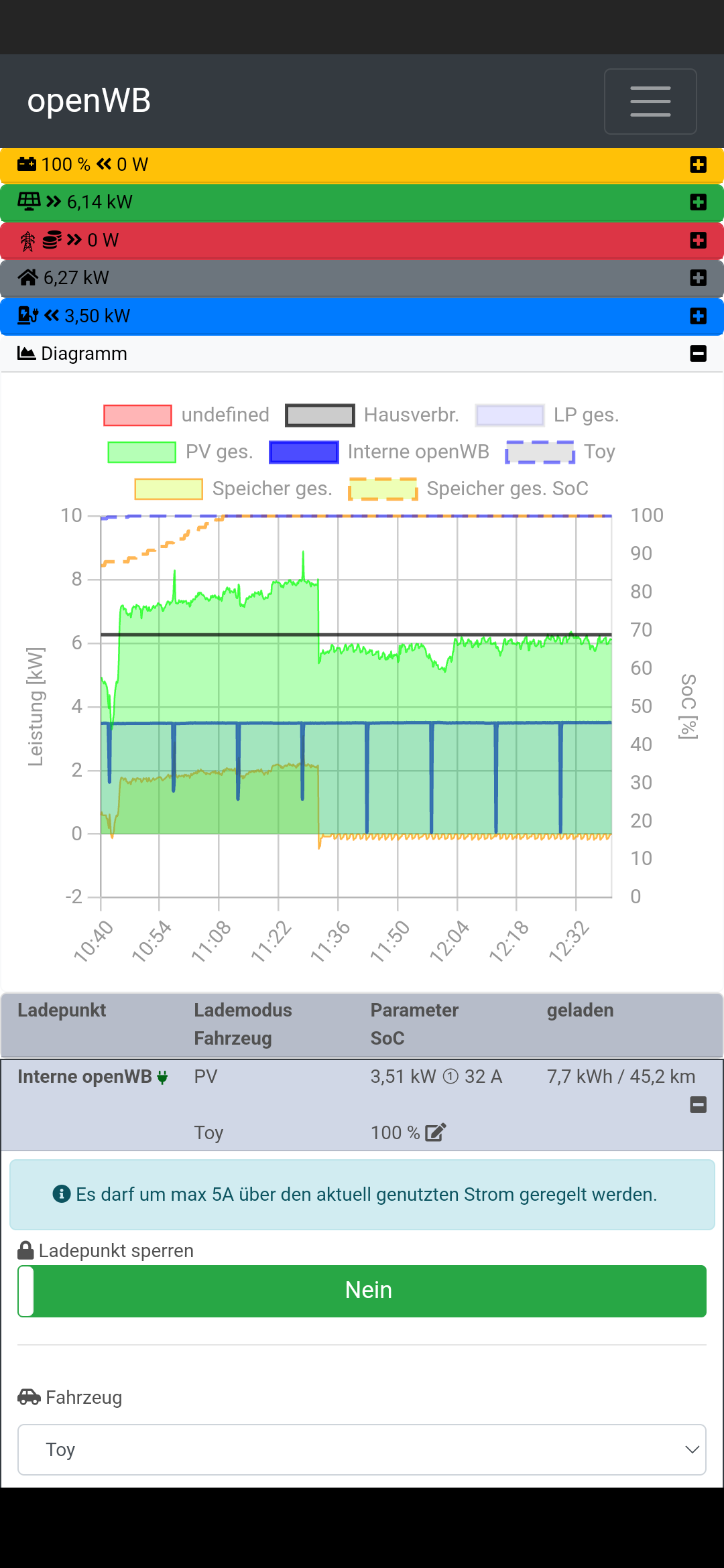 Wenn ich mir die Grafik ansehe, erkennt OpenWB eine konstante Hauslast von 6,27 kw, was natürlich Quatsch ist...